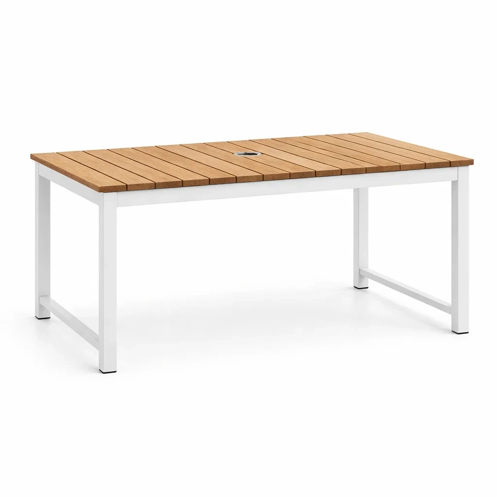 Table extérieure rectangulaire en aluminium et composite bois blanc